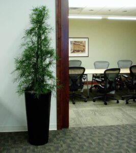 We frequently receive calls from clients asking for plants that don’t look tropical but instead reflect a northern aesthetic. The request is understandable—designers often want interior landscapes that connect to the local environment: “We want pine trees, not palm trees.”