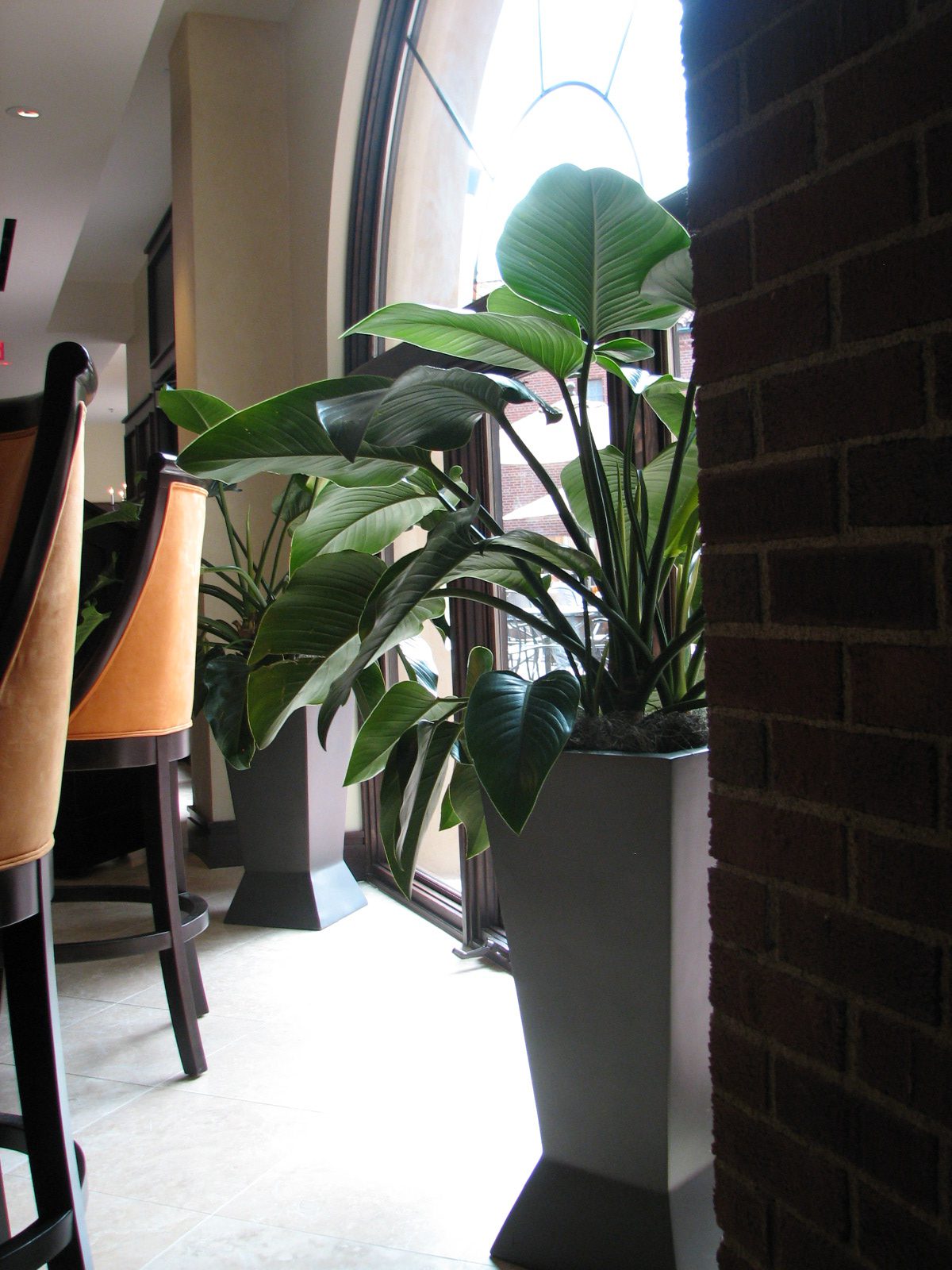 The broad glossy leaves are lush and vibrant. This plant provides an excellent pop of refreshing green for any interior.