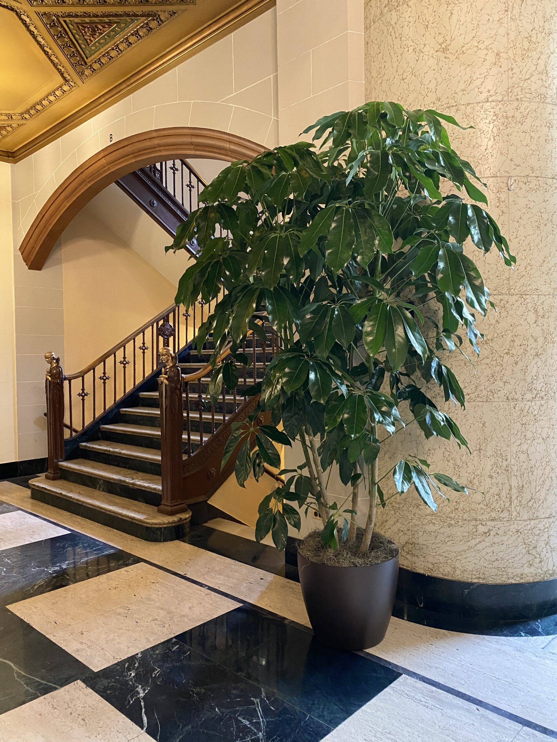 A common office plant in the 1970s, the Schefflera Amate offers full and lush dark foliage. One of the most popular plants in Feng Shui designs, this plant’s rounded leaves signify wealth and positive energy. The Schefflera is named after Polish botanist Johann von Schleffer.